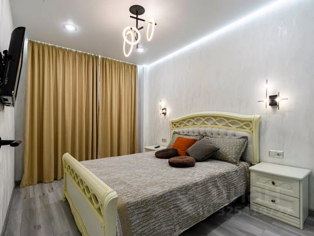 В квартире имеется все для комфортного проживания: двуспальная кровать, кресло-раскладушка (мягкая с матрасом и очень удобная ), шкаф, журнальный столик, хорошее освещение, натяжные потолки.