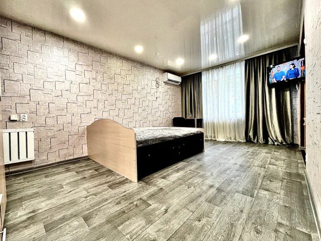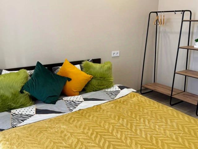 В квартире имеется все для комфортного проживания: двуспальная кровать, кресло-раскладушка (мягкая с матрасом и очень удобная ), шкаф, журнальный столик, хорошее освещение, натяжные потолки.