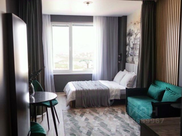 Студия с пpeкрacным видом и панорамными oкнами. У нас вы найдете все, что нужно для комфортного отдыха: - 1 двуспальная кровать; - обеденный стол/рабочее место; - шкаф; - постельное белье и полотенца; - кондиционер; - кухня со всем необходимым для приготовления пищи; - беспроводной интернет и телевизор с плоским экраном; - стиральная машина; - шампунь, т.бумага, жидкое мыло, ср.для мытья посуды; - фен; - утюг и гладильная доска а также бесплатная уборка и смена белья раз в 5-7 дней! Предоставляем отчетные документы по запросу. Наши преимущества Новый ЖК, охраняемая территория, на территории есть огороженная большая современная детская площадка что позволит детям находиться вдали от проезжей части, тихий район, парковка придомовая (платная, бесплатная). Условия заселения -Заселение круглосуточно (Время заезда/выезда с 14-00/12-00 (в некоторых случая мы готовы обсуждать индивидуальные условия выезд/въезд, эти пожелания нужно уточнять при подтверждения бронирования). - Бронирование доступно для лиц старше 21 лет, при заселении необходим паспорт для договора.-Взимается страховой депозит 3000 руб., который возвращается после 16.00 при выезде, если все условия договора соблюдены. ОПЛАТА Предоставляем пакет отчетных документы для командированных, оплату по счету. Остаток денежных средств за проживание вы можете оплатить переводом или наличными средствами по факту прибывания на объект. Дополнительно Дополнительные спальные места предоставляется по запросу. Указанная стоимость проживания действует для раннего бронирования и может измениться в период повышенного спроса и праздничные дни!
