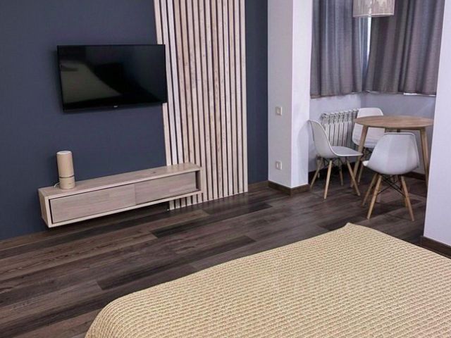 Квартира полностью оборудована и укомплектована для комфортного проживания проживания: двуспальная кровать, кухонный гарнитур, обеденный стол, стулья, диван,