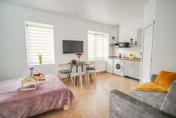 Диван и Чемодан - Ваш дом вдали от дома! ————— - Более 70 квартир на Правом и Левом берегу Новосибирска - Комплекс квартир во Владивостоке ————— Предлагаем Вашему вниманию: Стильная новая студия N42 в Первореченском районе города ————— Рядом: ДВГГТК, ТЦ Тухачевский, парковки, продуктовые магазины, столовые и рестораны ————— Гарантируем: 100% заселение при бронировании, чистоту и исправность, внимание, отзывчивость и доброжелательность ————— Закрытая территория и собственная парковка ————— В студии имеется: - Удобная двуспальная кровать-трансформер, которая с легкостью делается 1+1, и свежее постельное белье - Телевизор с функцией Smart TV, бесплатный Wi-Fi - Кухонная зона со всем необходимым: холодильник, микроволновая печь, электрическая плита, электрочайник, посуда и кухонная утварь - В ванной комнате имеются мягкие полотенца для каждого гостя, фен, средства гигиены (одноразовые шампунь, гель для душа, жидкое мыло) - Стиральная машина, водонагреватель, сушилка, утюг и гладильная доска ————— Правила проживания: - Время заезда с 14:00 (зависит от времени выезда предыдущих гостей). Время выезда 10:00. Возможнейший выезд позже - по согласованию - Командированным и организациям: полный пакет документов, чек с QR-кодом - Заселение происходит только после подписания договора с предоставлением фото Вашего паспорта - Бесконтактный заезд и выезд - Квартира не предназначена для проведения развлекательных мероприятий. Необходимо соблюдать режим тишины с 22.00 до 7.00 - Запрещено курить в квартире, в подъезде, возле подъезда, а также распивать крепкие алкогольные напитки - Заселение несовершеннолетних только с родителями и опекунами - Время работы отдела бронирования: с 06:00 до 00:00. В ночное время брони мы не принимаем. Круглосуточное заселение возможно лишь при предварительном бронировании - В наших квартирах НЕТ залога. Но есть исключения: проживание с животными; возраст от 18 до 21 года; плохие отзывы. Надеемся на Ваше понимание! ————— Жми забронировать и приезжай в гости! Мы рады каждому из Вас :)